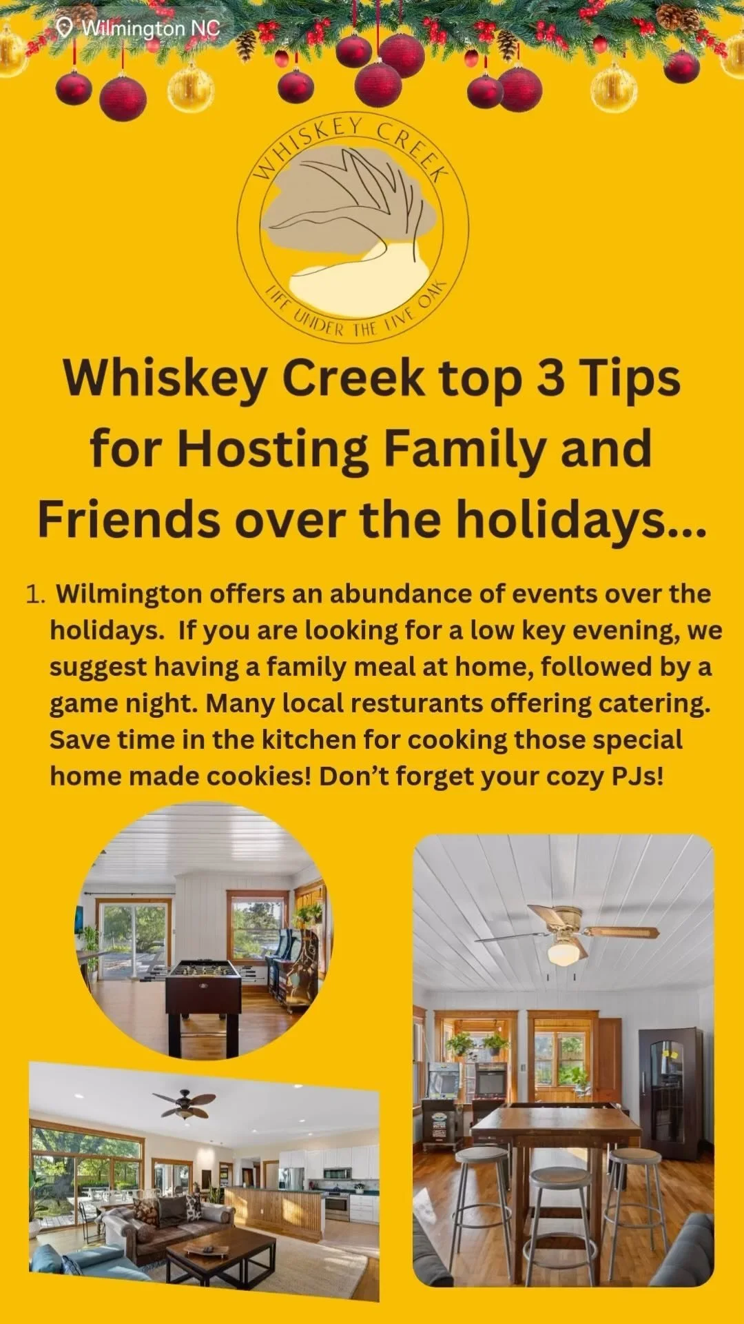 Named for the stunning creek it sits on, Whiskey Creek is a charming 4-bedroom waterfront retreat that offers a secluded and serene getaway for roadtrips, family reunions, or time alone to enjoy the water views. The home sits nestled amongst live and water oaks tucked away from main roads to relax in your own little world. This home benefits from an open floor plan, a game room, a great backyard patio and a private dock where you can enjoy the sunshine, and the beautiful Whiskey Creek and Masonboro Island views.